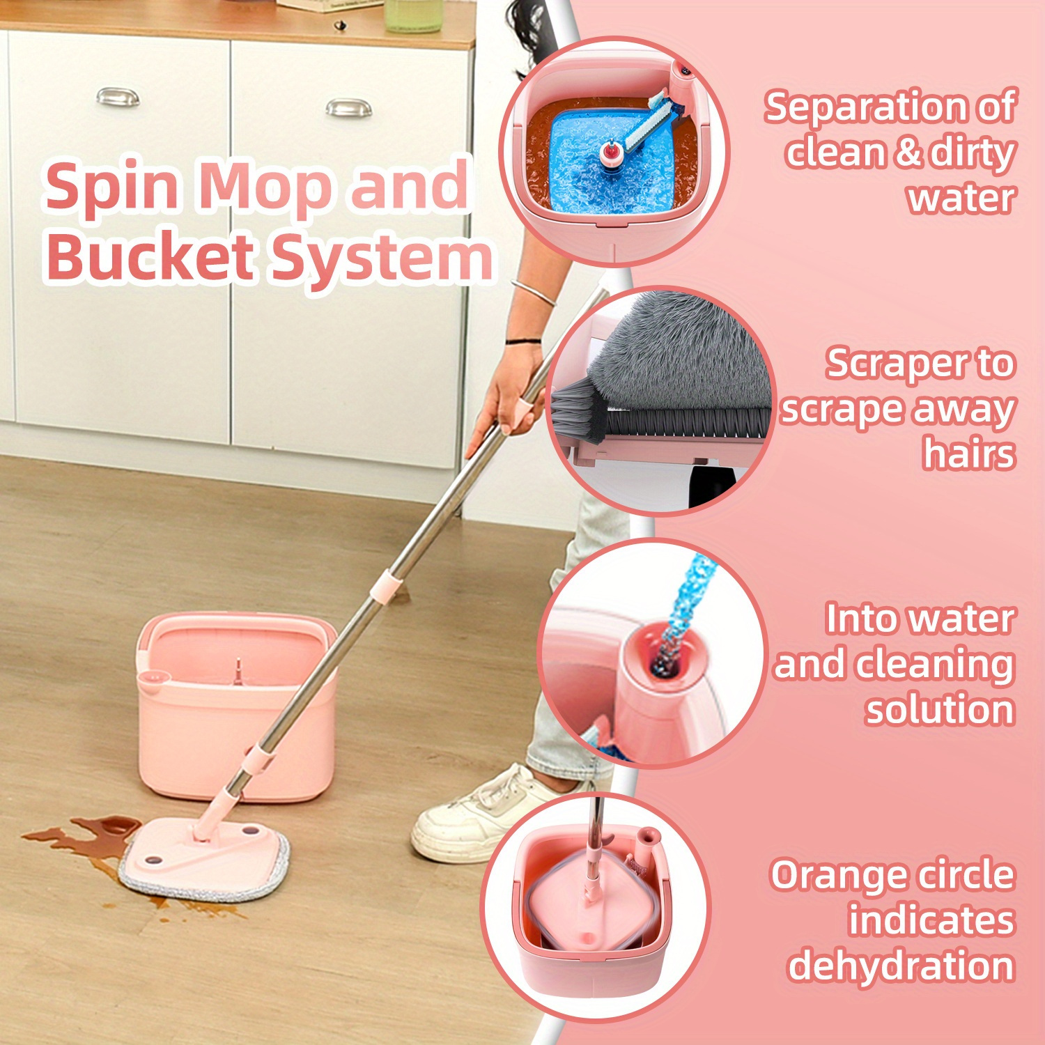 1set Spin Mop and Bucket System with 360° Rotating Mop Head, 2/6/10 Microfiber Refills Included, Self-Cleaning for Hardwood, Tile, Marble Floors, Ideal for Living Room, Bedroom, Bathroom, Kitchen