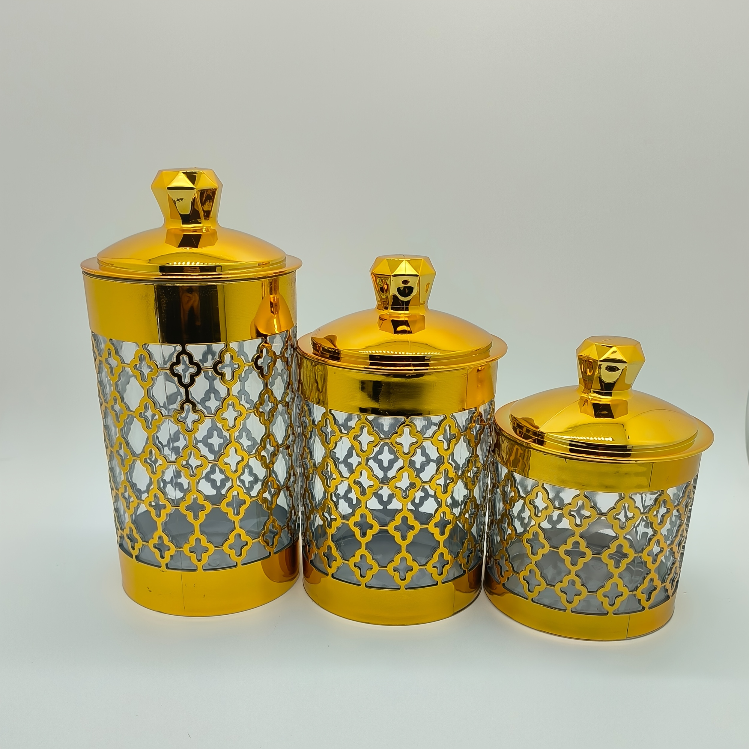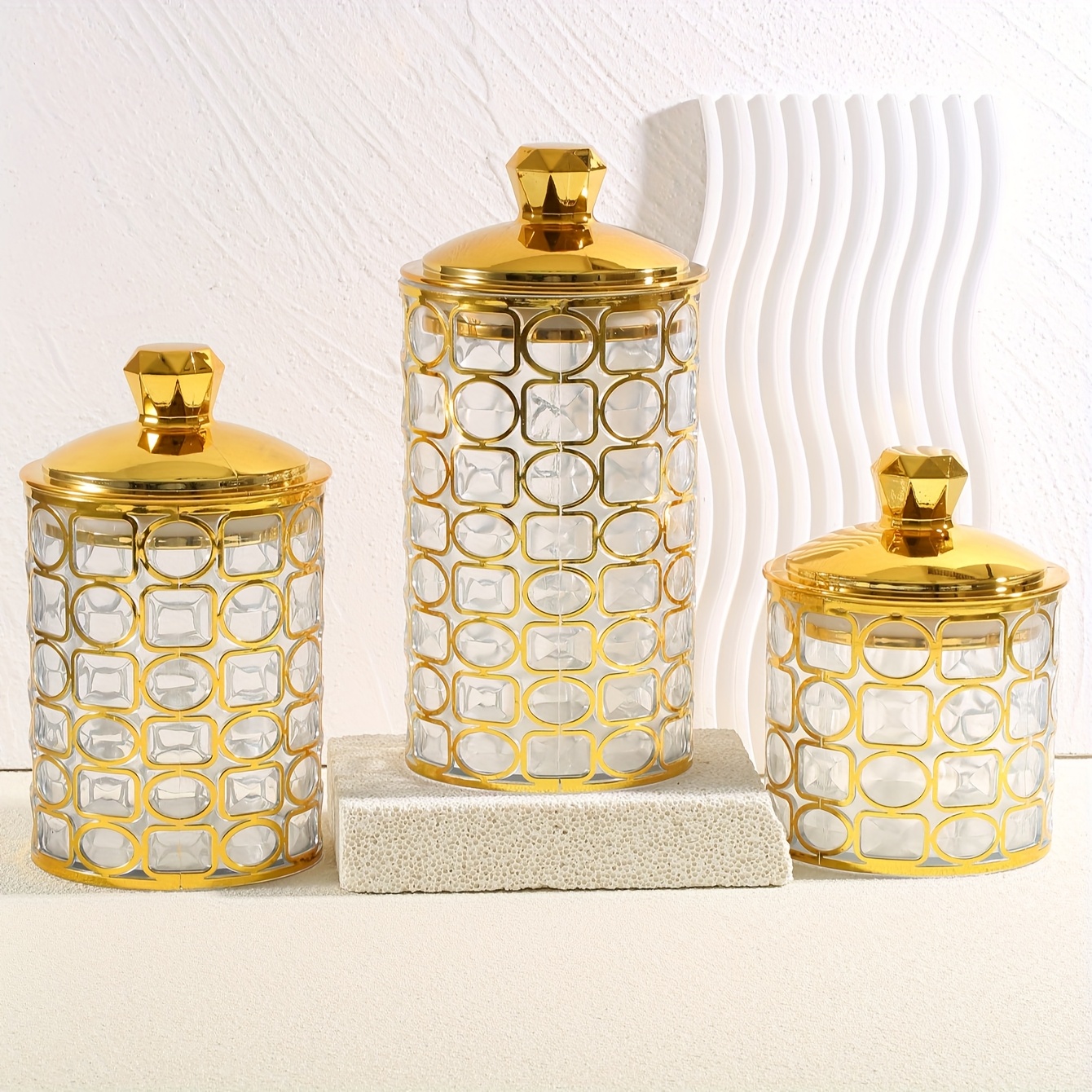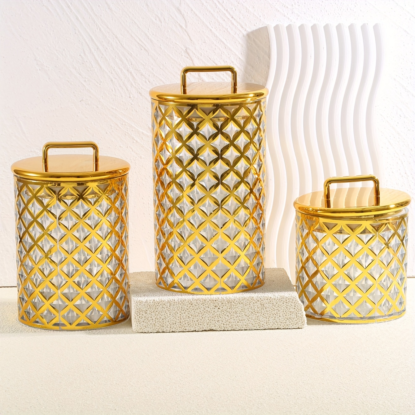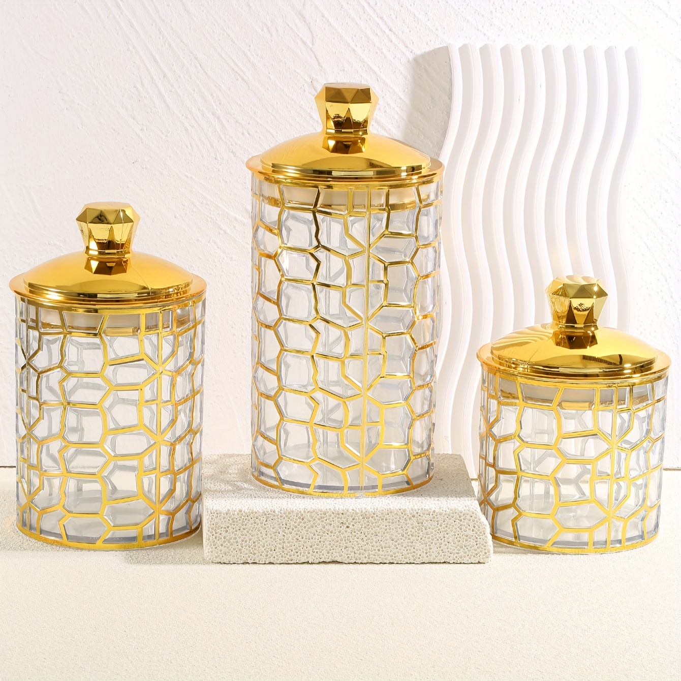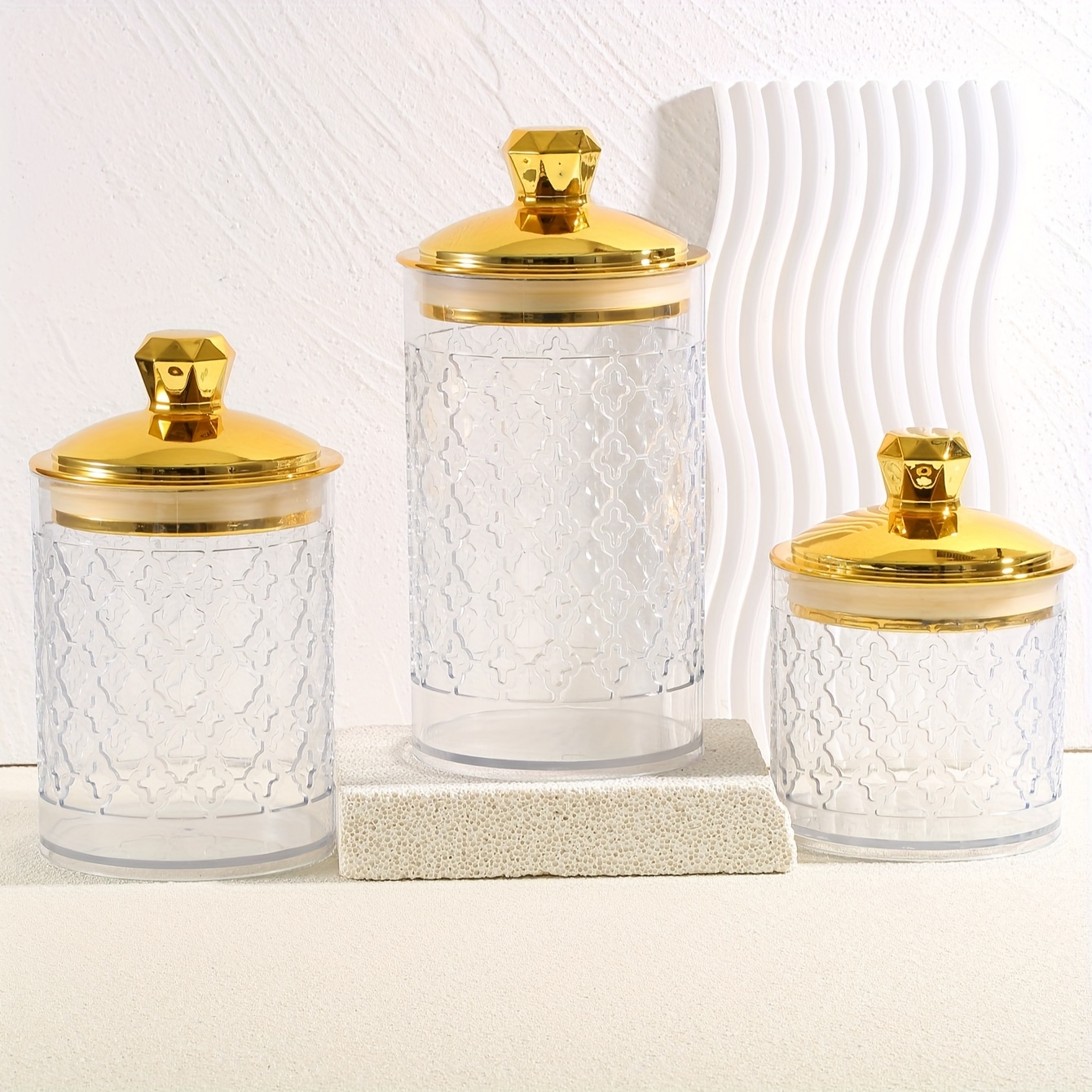 3pcs Large Capacity Airtight Food Storage Containers with Golden Lids – Moisture-Proof, Pest-Resistant, Reusable PET Jars for Snacks, Spices, Nuts – Transparent Design for Easy Organization, Snack Storage Containers, Kitchen Organization, Elegant Kitchenw