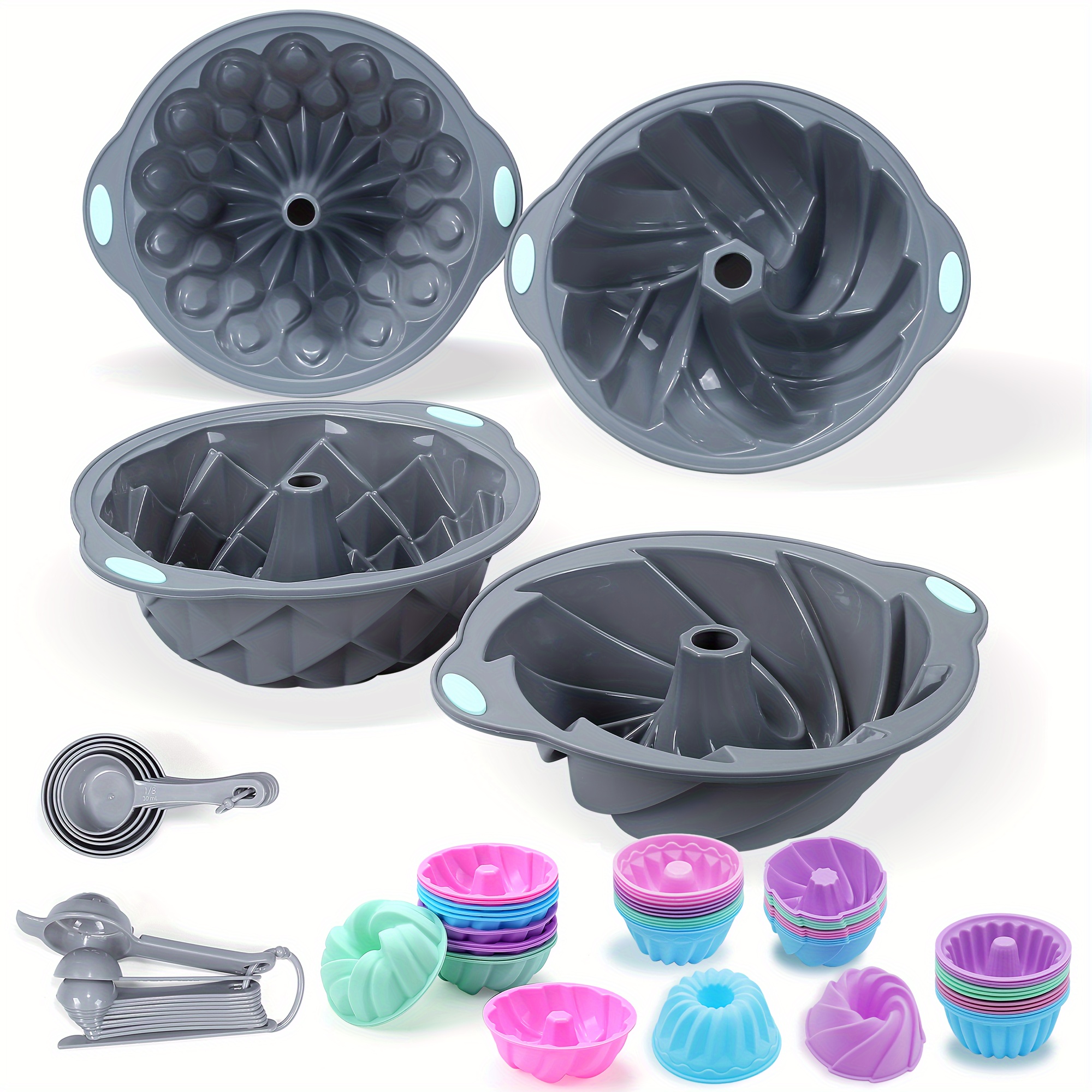 4pcs/57pcs Silicone Cake Pan, Nonstick Fluted Tube Cake Pans For Baking, Baking Mold For Cake, Brownie, Flan, Meatloaf
