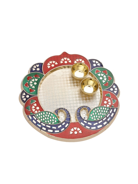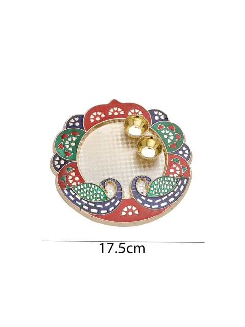 Aapno Rajasthan Red & Green Peacock Shape Pooja Thali