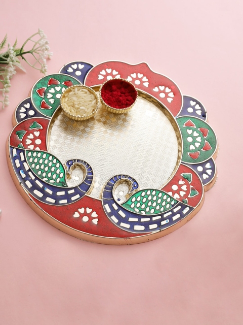 1 review for Aapno Rajasthan Red & Green Peacock Shape Pooja Thali
