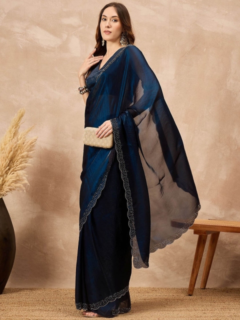 The blouse worn by the model might be for modelling purpose only. Check the image of the blouse piece to understand how the actual blouse piece looks like.