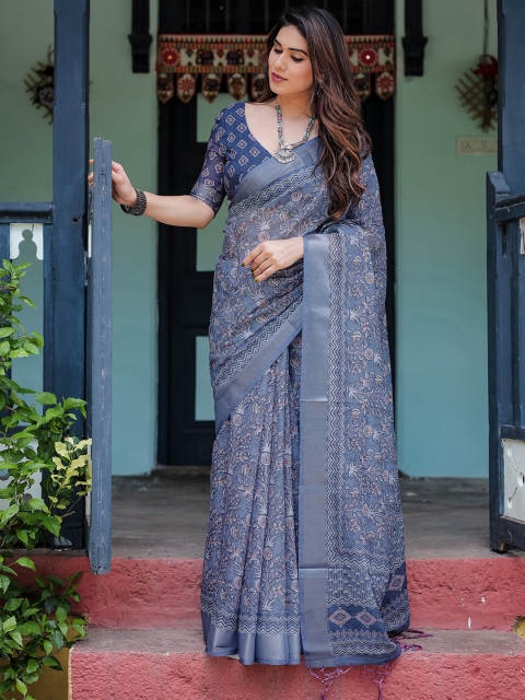 - Ethnic motifs printed saree with woven design border