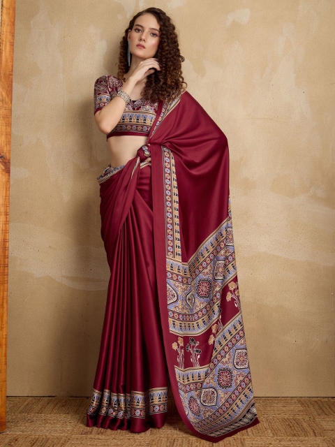 The blouse worn by the model might be for modelling purpose only. Check the image of the blouse piece to understand how the actual blouse piece looks like.
