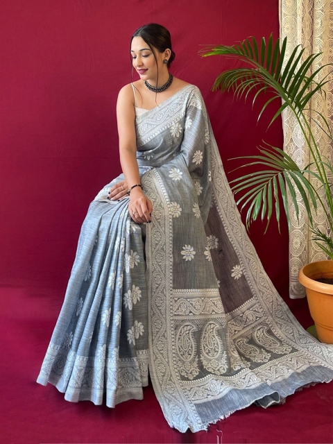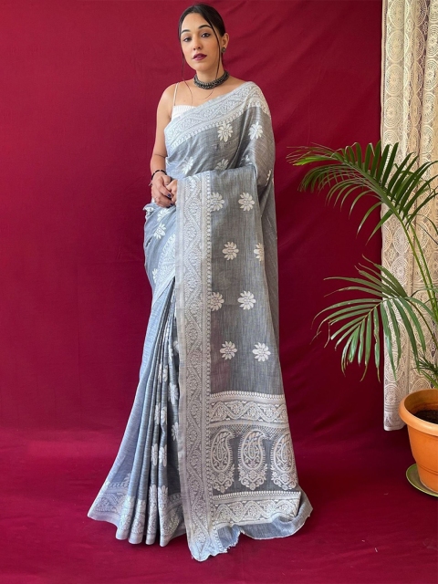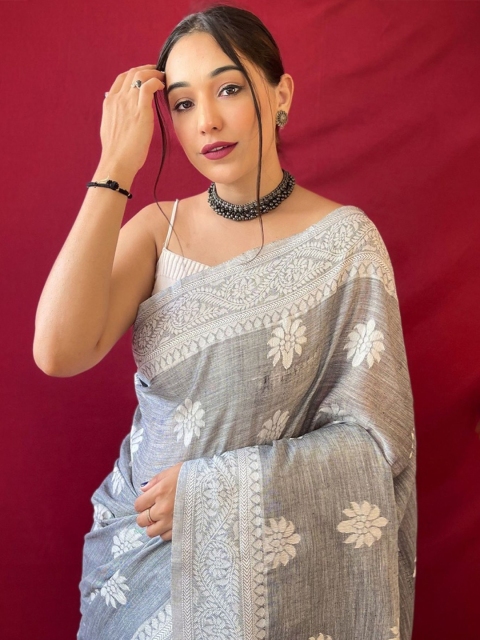 all about you Woven Design Pure Linen Kanjeevaram Saree