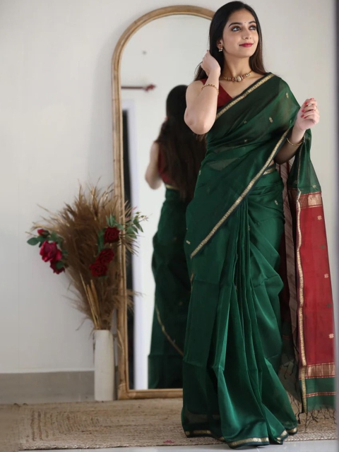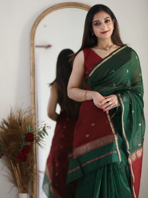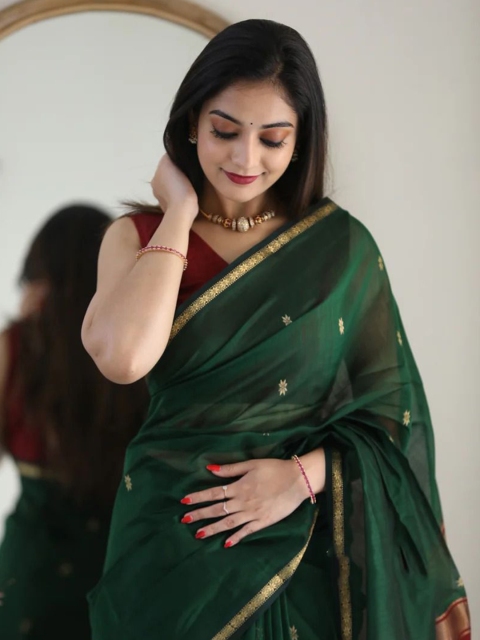 The blouse worn by the model might be for modelling purpose only. Check the image of the blouse piece to understand how the actual blouse piece looks like.