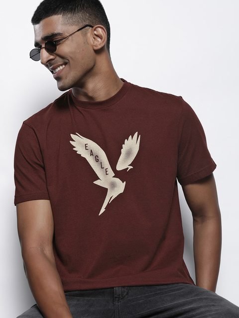Be the first to review “AMERICAN EAGLE OUTFITTERS Men Burgundy & Off White Standard Fit Brand Logo Cotton T-shirt”