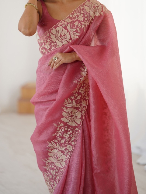 3 reviews for Mandara Floral Embroidered Tissue Saree