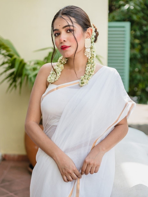 - White and gold-toned saree