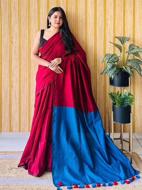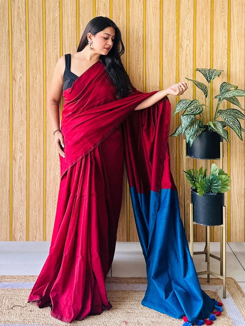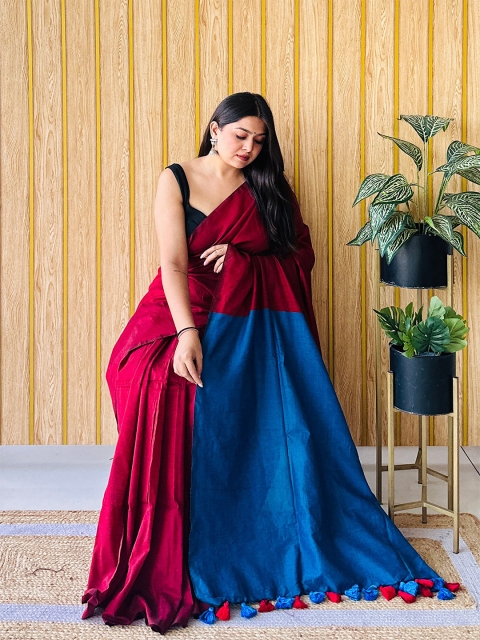 • Maroon and blue saree