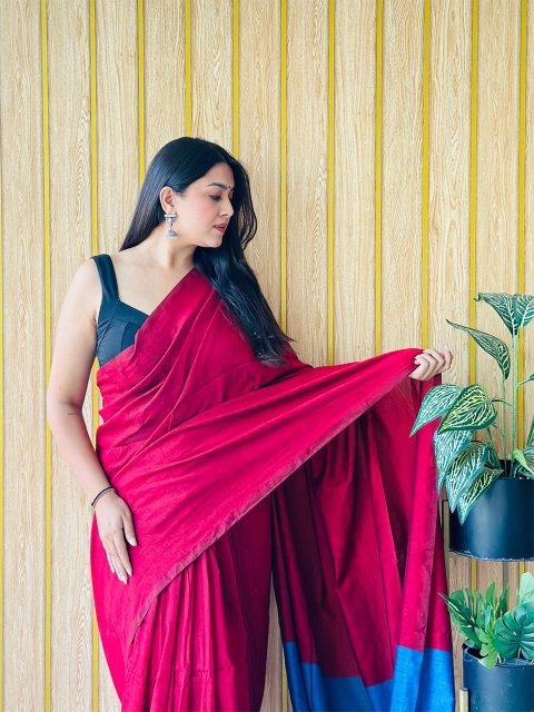 • Solid saree with solid border