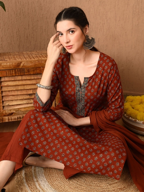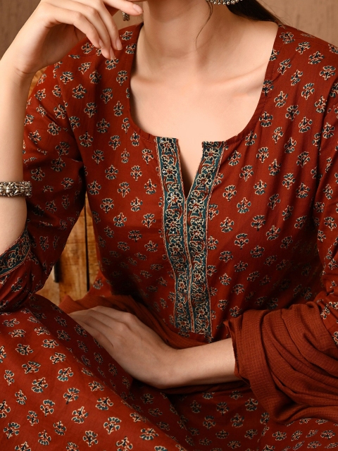 Brown printed Kurta with Trousers with dupatta