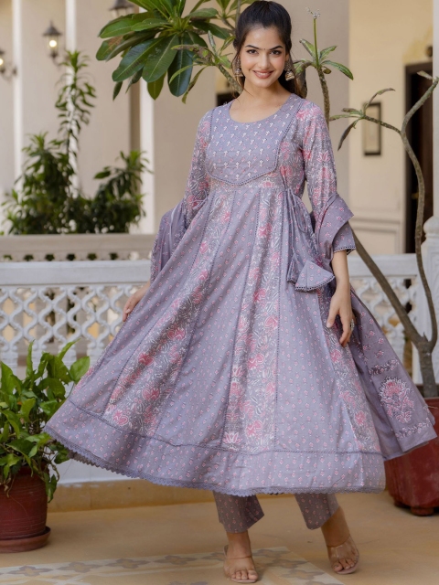 Purple yoke design Kurta with Trousers with dupatta