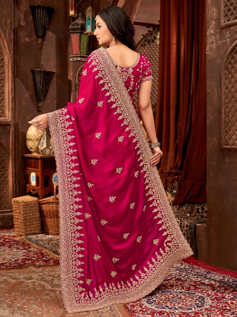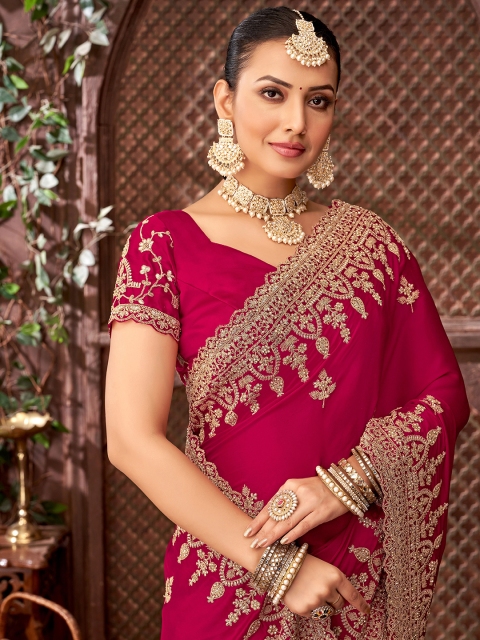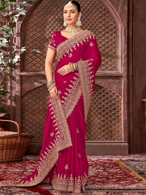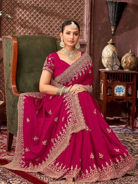• Ethnic motifs embroidered saree with embroidered border