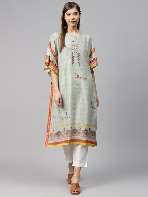 Be the first to review “Biba Women Sea Green & Orange Printed Kaftan Kurta”