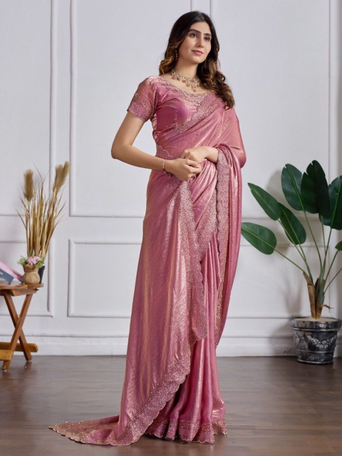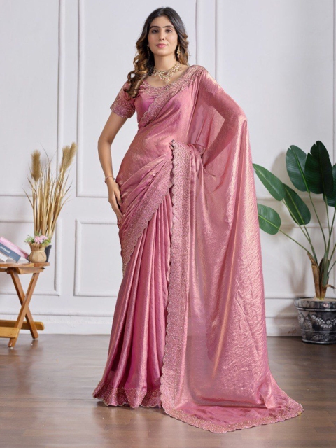 Branzios Embellished Beads and Stones Pure Chiffon Saree
