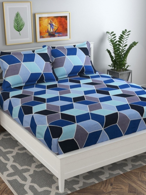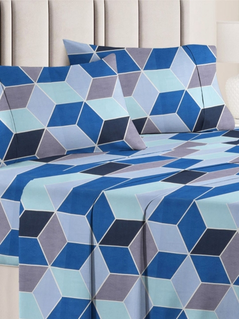 bsb home Aspire Blue Printed 144 TC Wrinklfree Queen Bedsheet Set 2.28 m x 2.20 m