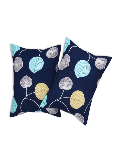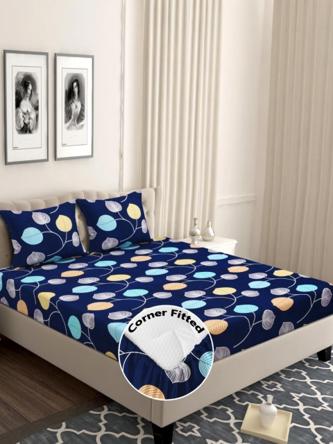 bsb home Navy Blue & Yellow Floral 210 TC Queen Bedsheet with 2 Pillow Covers