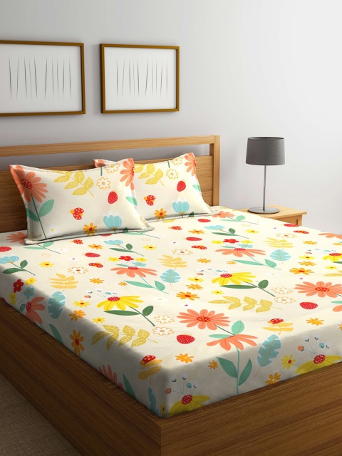 Klotthe Grey and Yellow 300 TC Cotton King Size Bedsheet with 2 Pillow Covers:
