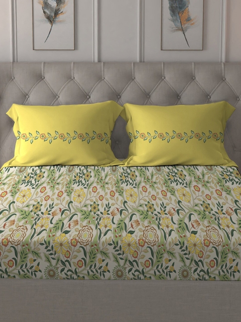 Buy MYTRIDENT Beige White Floral Pure Cotton 144 TC Queen Bedsheet With 2 Pillow Covers – – MANDARA for Unisex