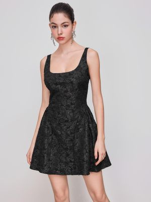 1 review for Cider Jacquard Square Neck Floral Zipper Mini Dress