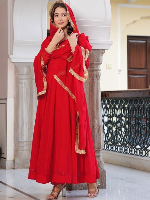 Red printed Kurta with Trousers with dupatta