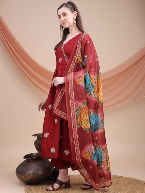 Mandara Women Embroidered Angrakha Kurta with Trousers & Dupatta