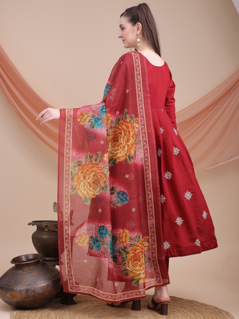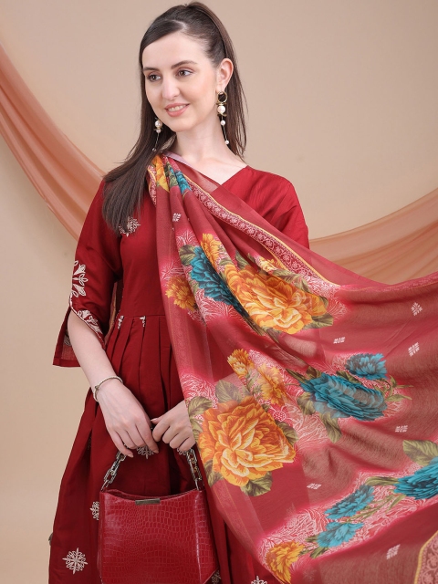 Red embroidered Kurta with Trousers with dupatta