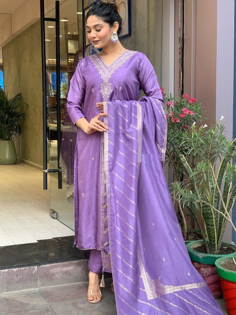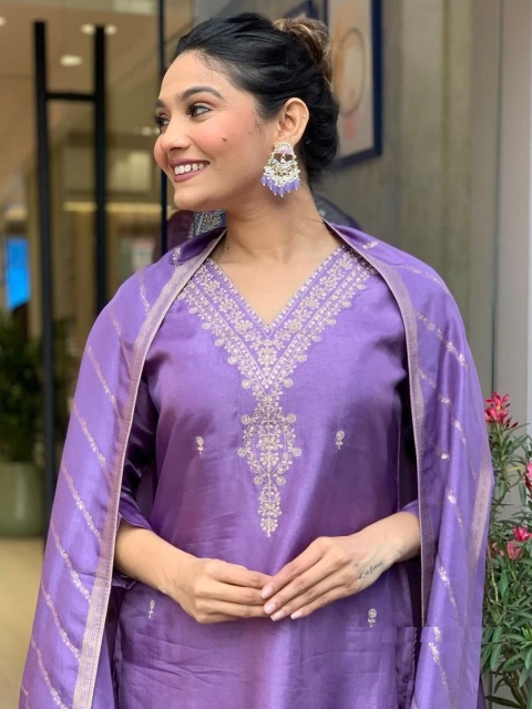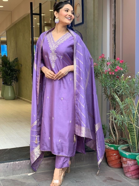 1 review for Mandara Women Embroidered Regular Sequinned Pure Cotton Kurta & Trousers With Dupatta