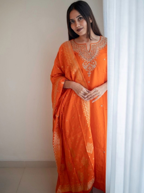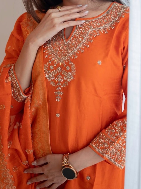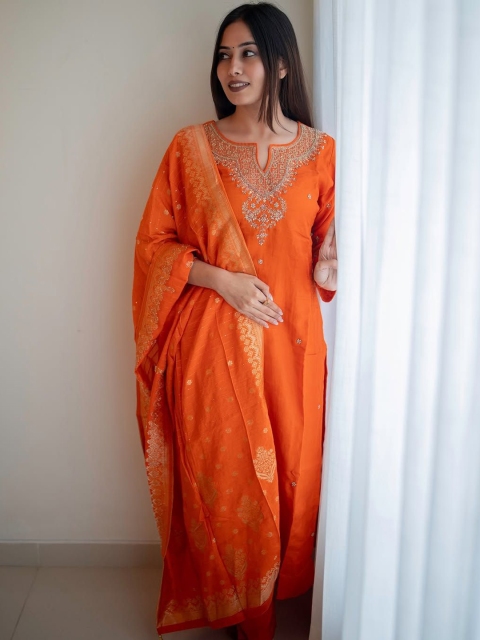 Mandara Women Ethnic Motifs Embroidered Beads and Stones Kurta with Trousers & Dupatta