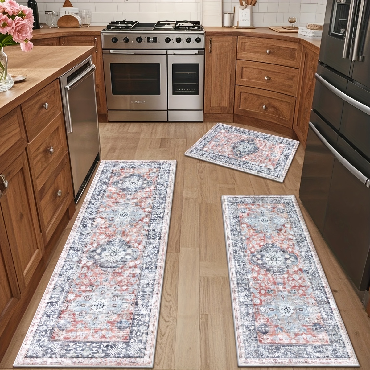 Farmhouse Kitchen Rugs Sets Of 3 Non Slip Washable Boho Kitchen Rugs And Mats for Floor Kitchen Runner Mat Floor Mat for Kitchen, Laundry, Hallways