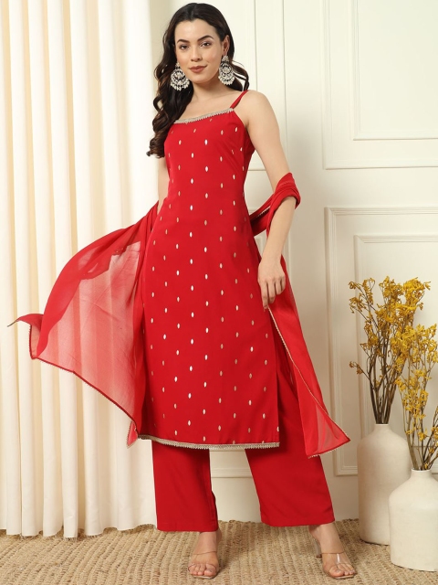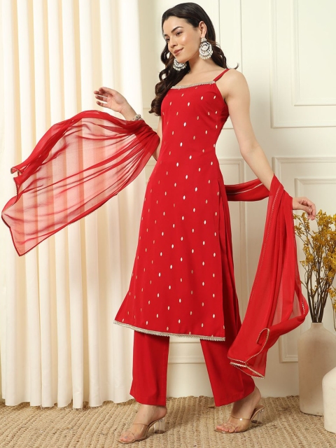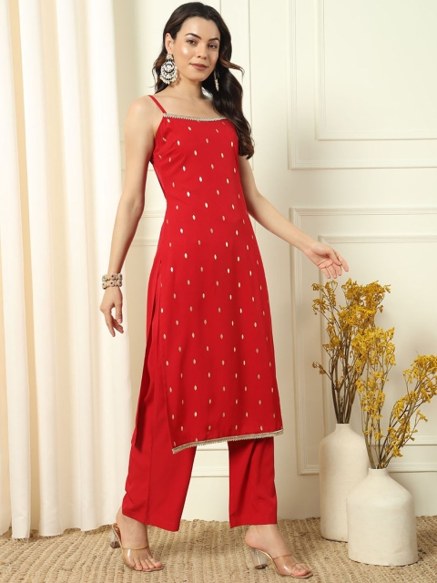 Red & gold-toned printed Kurta with Palazzos with dupatta