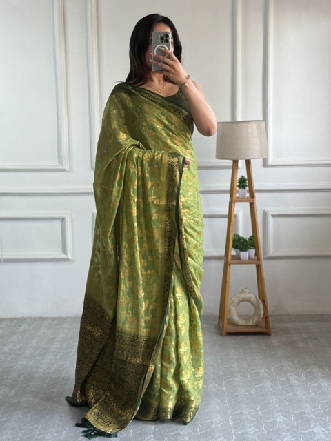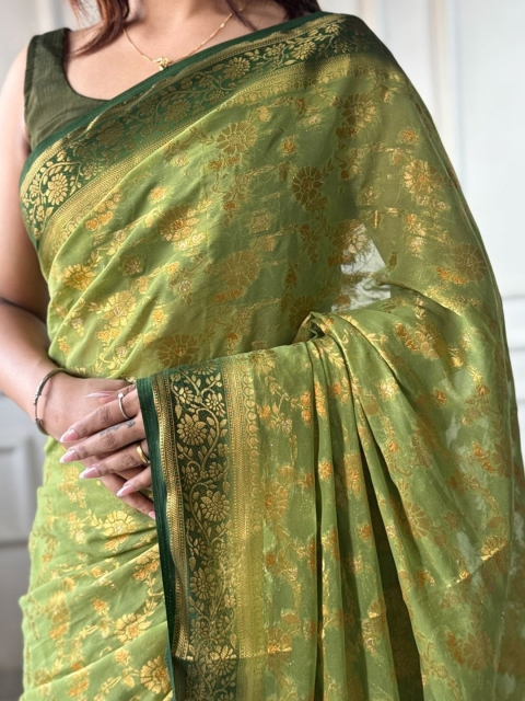 • Green and olive green banarasi saree