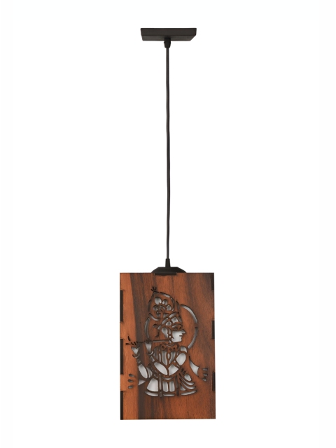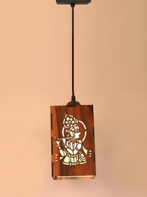 Gojeeva Brown and White Krishna Wooden 10 Watts Rectangular Traditional Ceiling Lamp