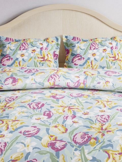 3 reviews for MANDARA & kinder Blue & Yellow Printed 186 TC Pure Cotton King Bedsheet With 2 Pillow Covers