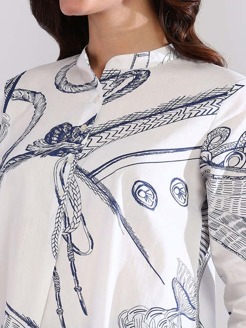 HERE&NOW Floral Printed Mandarin Collar Cotton Straight Kurta