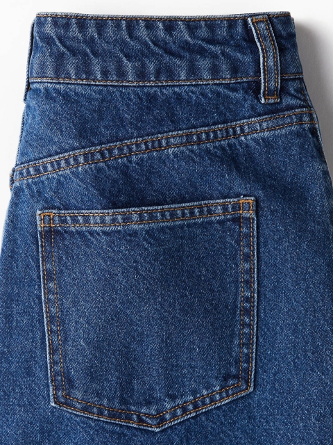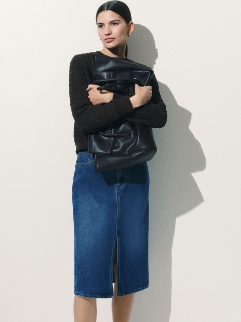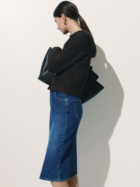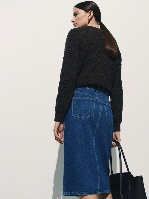 Calf-length, 5-pocket skirt in cotton denim with a regular waist and a zip fly with a button. Straight-cut hem with a slit at the front.