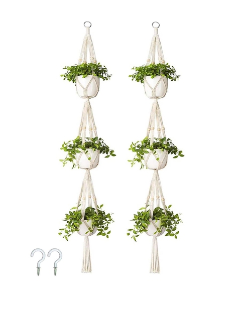 Homesake Set Of 2 Beige Macrame Plant Hangers Without Pot