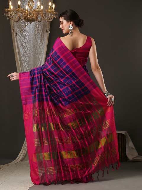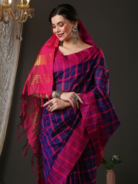 IndianRang Checked Print Saree With Unstitched blouse piece