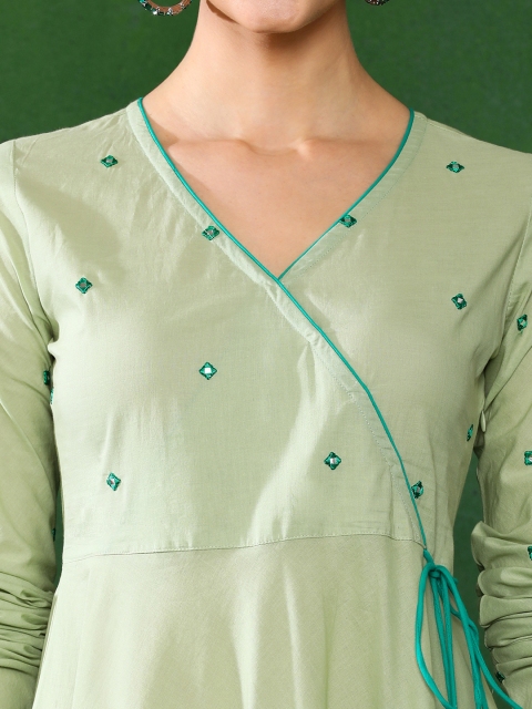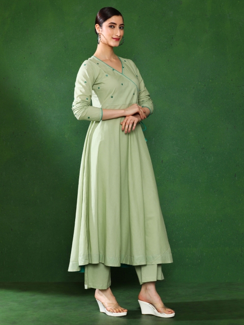 1 review for Jaipur Kurti Angrakha Style Cotton Flared Kurta With Palazzos