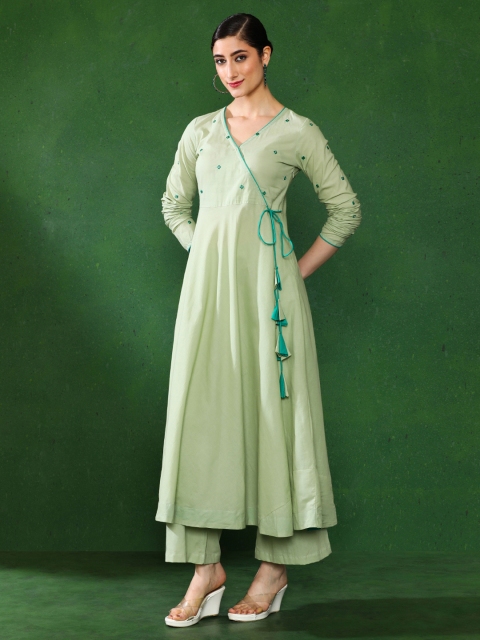Jaipur Kurti Angrakha Style Cotton Flared Kurta With Palazzos