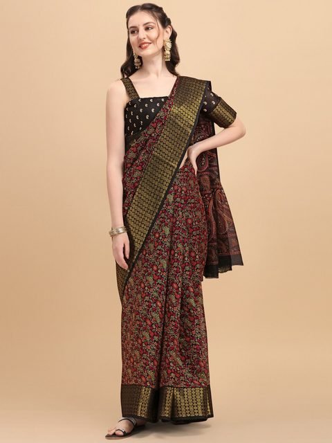 The blouse worn by the model might be for modelling purpose only. Check the image of the blouse piece to understand how the actual blouse piece looks like.