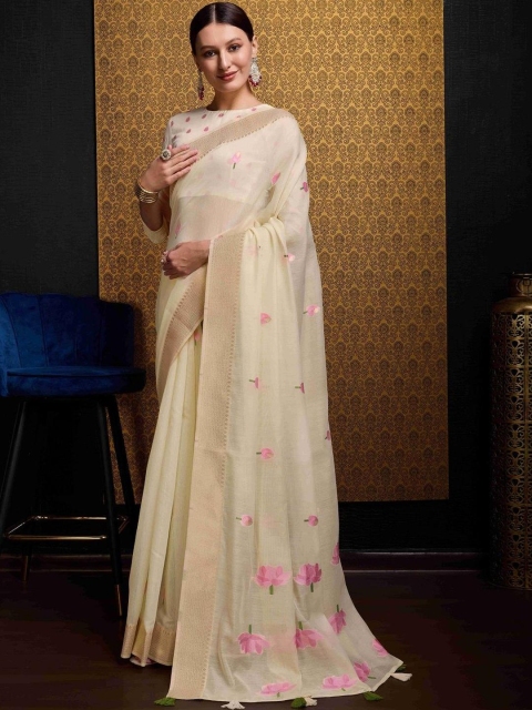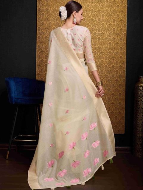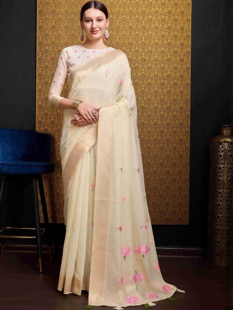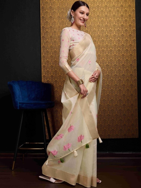 Saree Fabric : Pure Cotton, Blouse Fabric : Pure Cotton | Saree Pattern : Floral, Saree Color : Cream | Wash Care : Dry Clean | Occasion : Wedding, Festival, Party, Casual