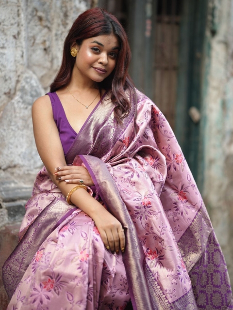 The blouse worn by the model might be for modelling purpose only. Check the image of the blouse piece to understand how the actual blouse piece looks like.
