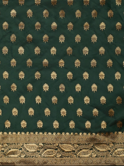 • Green and gold-toned banarasi saree