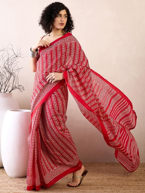 - Red and white dabu saree