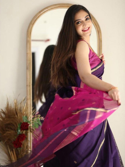 The blouse worn by the model might be for modelling purpose only. Check the image of the blouse piece to understand how the actual blouse piece looks like.