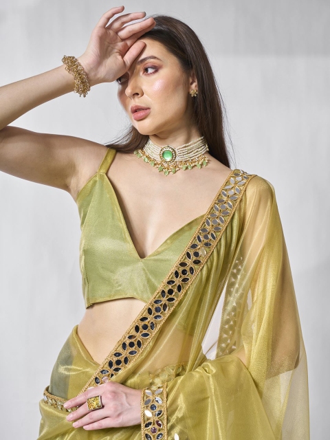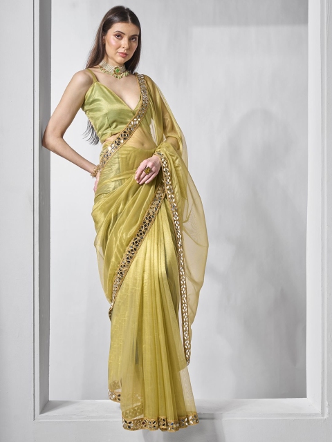 MANDARA Mirror Work Organza Saree