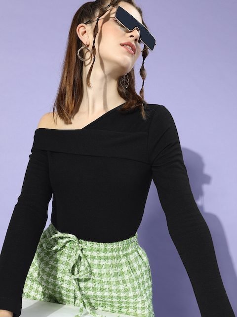 Stand out in style at any event by wearing this modish top. It boasts a lovely one shoulder and long regular sleeves for an appealing look.