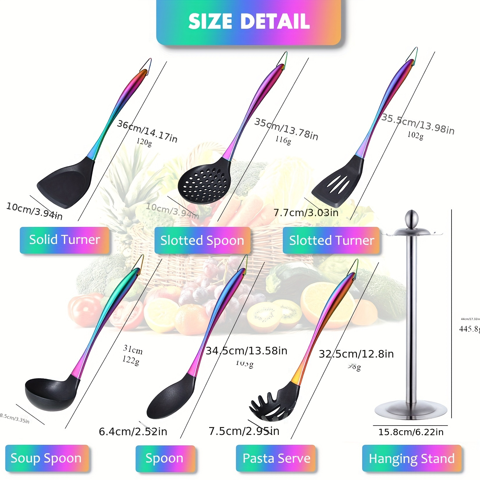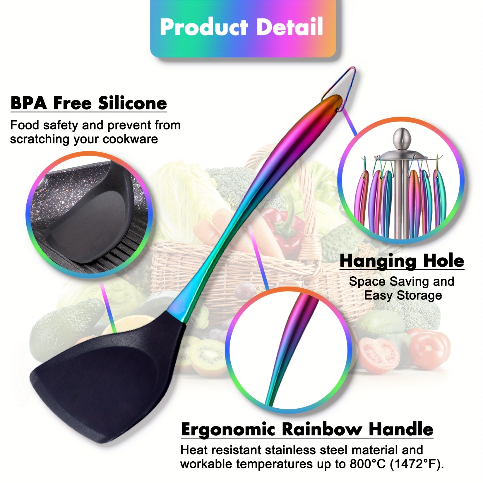Kitchen Utensils Set-17pcs Titanium Rainbow Silicone Spatula, Silicone Cooking Utensils Set with Holder, Heat Resistant Silicone Utensils for Cooking, Non-stick Spatula Set, Ladle with Stainless Steel Handle, Skimmer